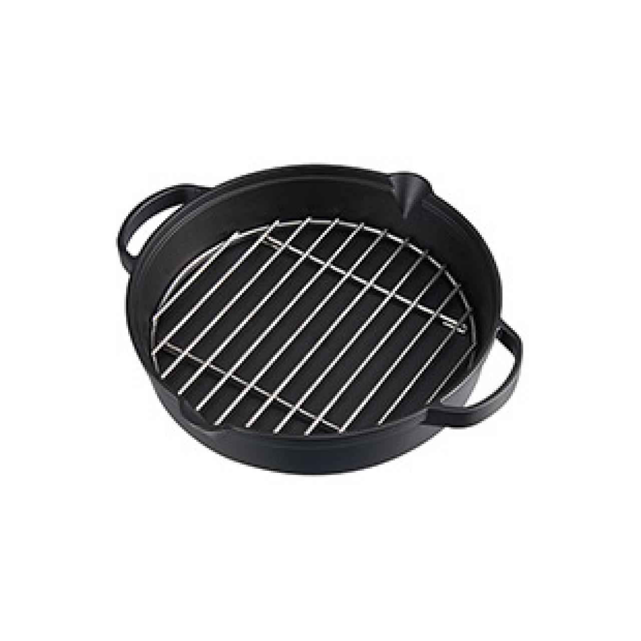 Gusseiserne Pfanne mit integriertem Edelstahlrost