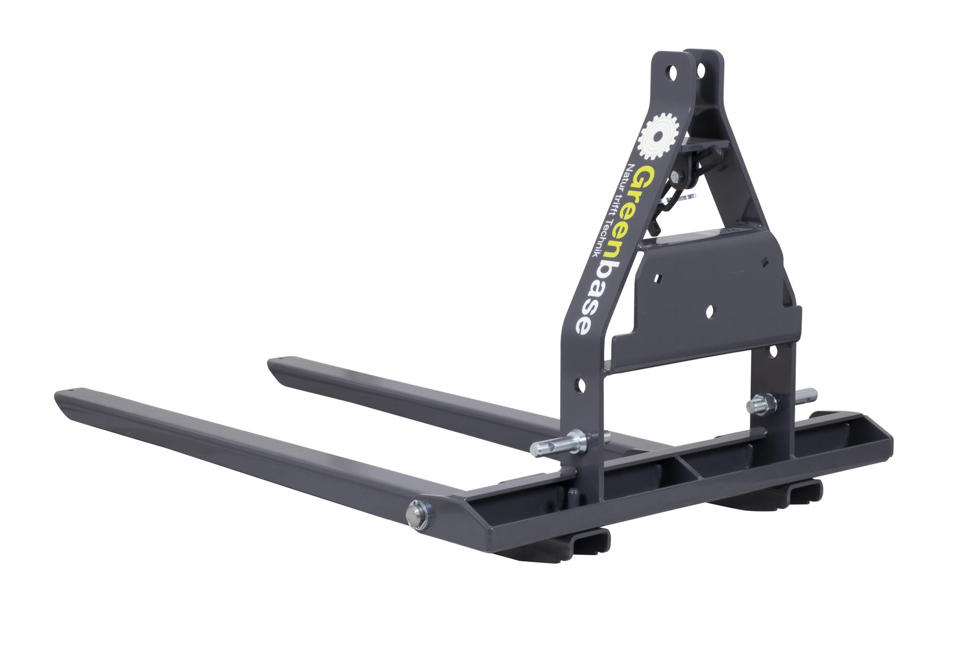 Hubgabel für Traktoren. Mit einer Tragfähigkeit bis zu 500 kg ist diese umklappbare Hubgabel 500 die Unterstützung, die Sie an ihrem Traktor an den Dreipunktanschluß mit Kat am Heck montieren können. Mit einer in der Breite einstellbaren Gabel von 53 cm bis 83 cm (Gabelaußenmaß) und einer Zinkenlänge von 110 cm ist diese Hubgabel nicht nur für Standard-Paletten geeignet. Nutzen auch Sie die Möglichkeit, mithilfe Ihres landwirtschaftlichen Traktors und dieser Palettengabel. den Brennholztransport zu vereinfachen. Schnell und einfach zum Ziel bzw. zum Brennholzlager.